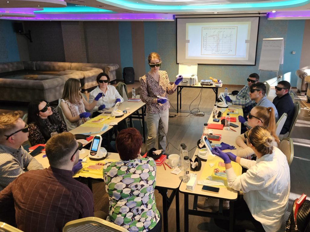 I regularly deliver professional courses for dentists, in collaboration with local representatives of dental laser manufacturers.